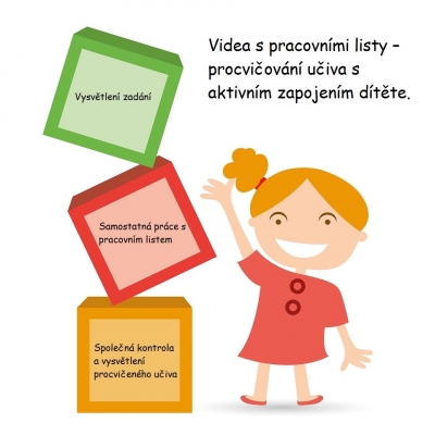 Učivo je s dítětem nejprve opakováno, následuje vysvětlení a zadání pokynů k samostatnému vypracování listu. Dítě podle pokynu video zastaví a s listem pracuje. Poté si video opět spustí a společně s primaúčou kontroluje svou práci. Veškeré úkony jsou opět vysvětlovány a dítě si tak učivo opravdu zafixuje.